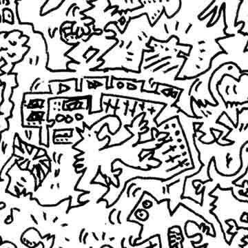 A portrait of Alan Parson with biography drawings inside the picture such as :