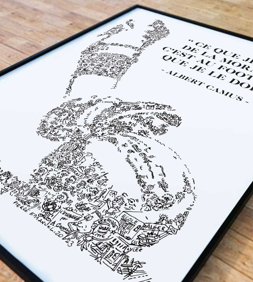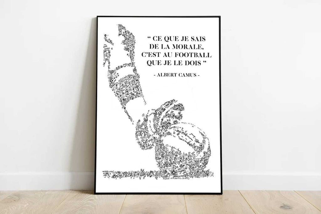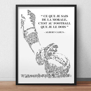 Here is an illustration of the quote of Albert Camus "what I know most surely in the long run about morality and obligations, I owe to football.”, french writer of "the plague" and "the stranger" and Literature Nobel Prize.. This quote is from his posthumously published book : "The First Man" : a biographical work with some chapters dedicated to his football passion when he was a young boy.