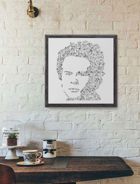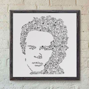 A portrait of Art Garfunkel with doodles inside the print. Plenty of details about the one of the Simon and Garfunkel duo :