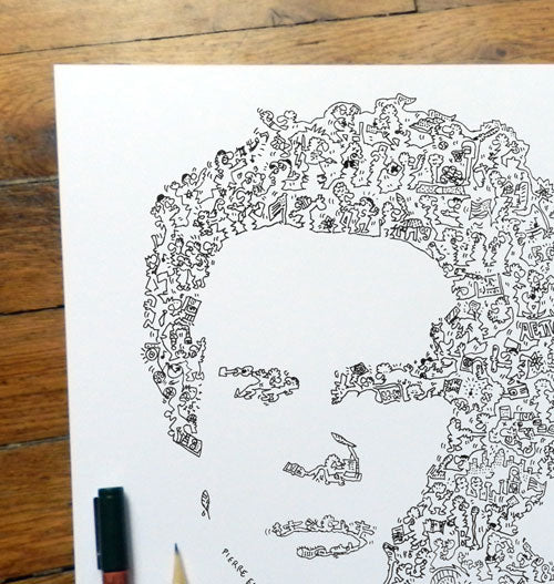 Hand-drawn and printed on matt art paper. Easy to frame, this hand-signed and numbered print will be a great discussion starter!