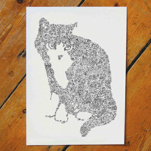 Hand-drawn and printed on matt art paper. Easy to frame, this hand-signed and numbered print will be a great discussion starter!