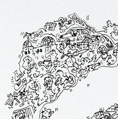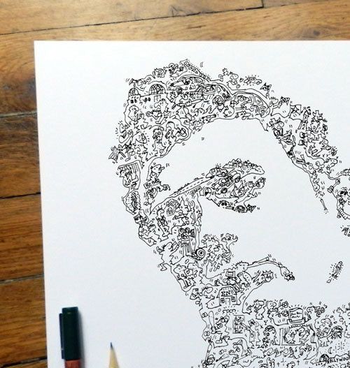 Hand-drawn and printed on matt art paper. Easy to frame, this hand-signed and numbered print will be a great discussion starter!
