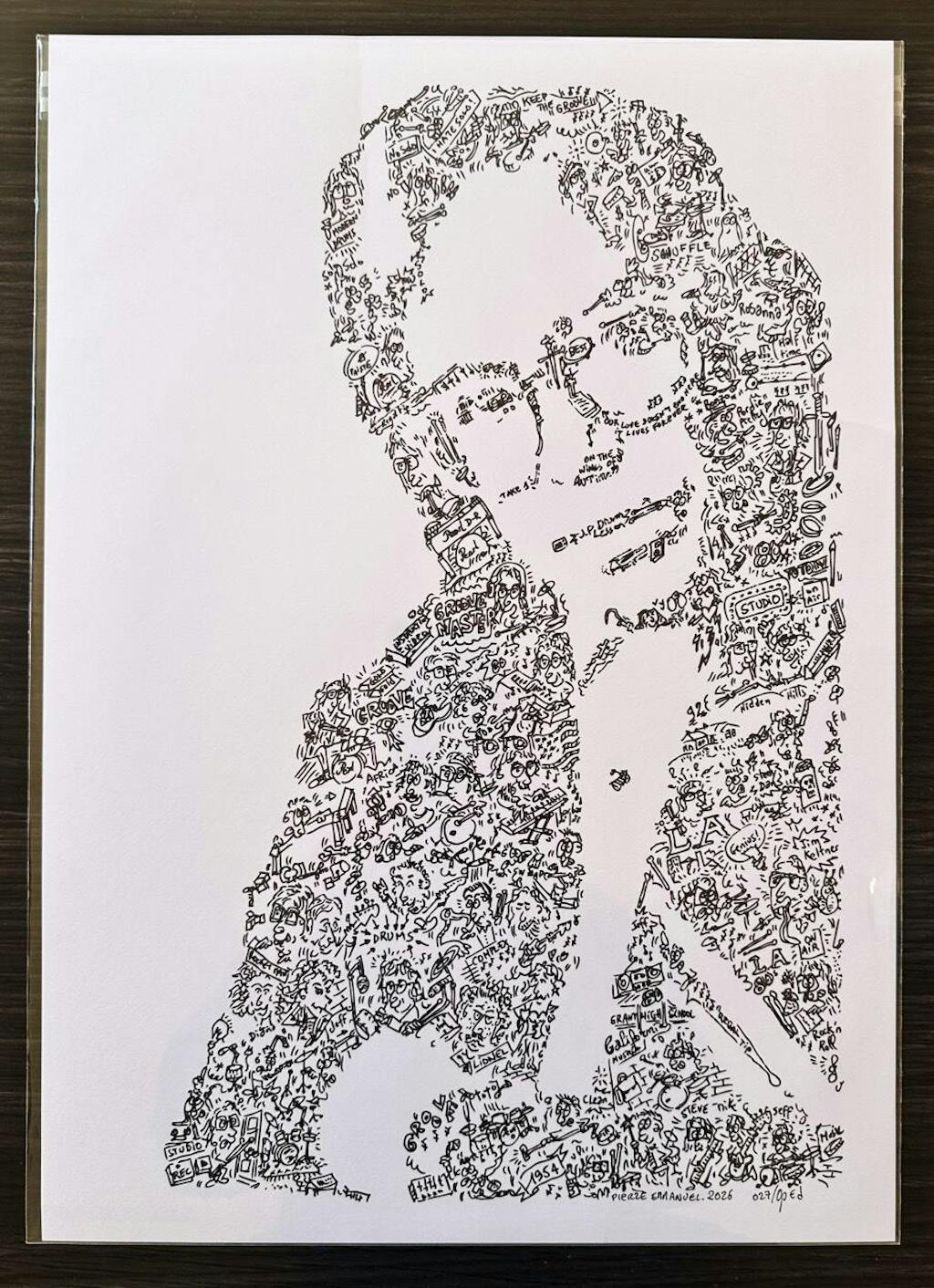Hand-drawn and printed on matt art paper. Easy to frame, this hand-signed and numbered print will be a great discussion starter!