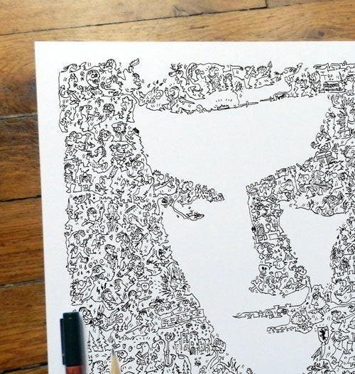 Hand-drawn and printed on matt art paper. Easy to frame, this hand-signed and numbered print will be a great discussion starter!