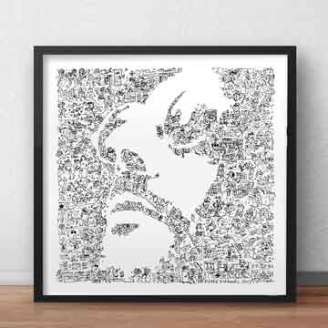 Hand-drawn and printed on matt art paper. Easy to frame, this hand-signed and numbered print will be a great discussion starter!