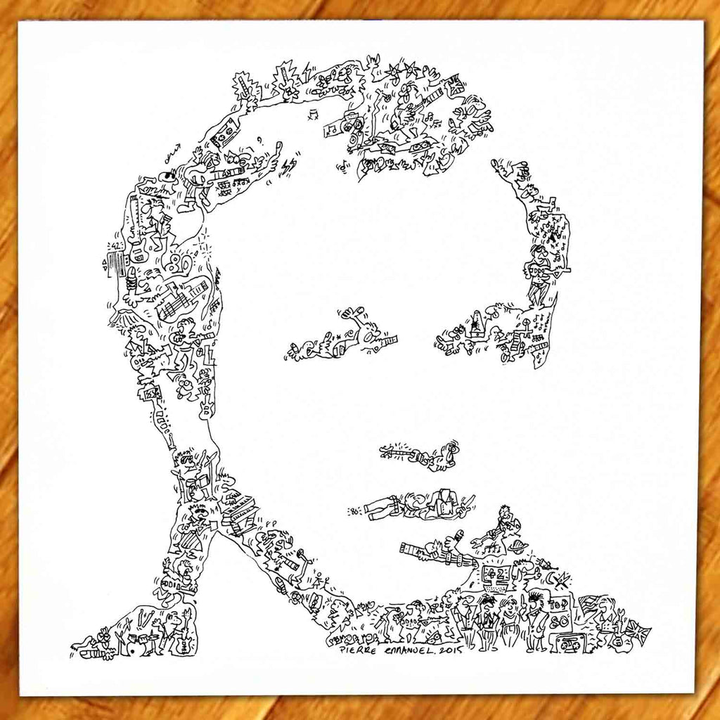A portrait of Mark King of the Level 42 band with doodles inside the print. Plenty of details about the singer and bassist :