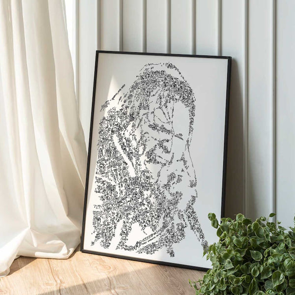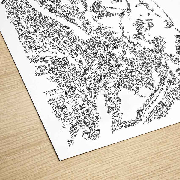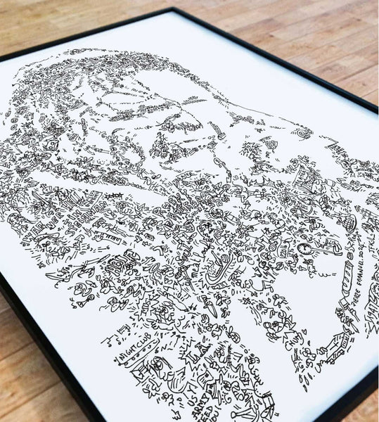 Hand-drawn and printed on matt art paper. Easy to frame, this hand-signed and numbered print will be a great discussion starter!