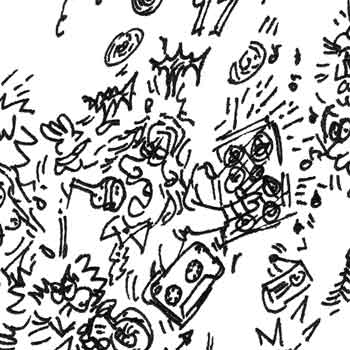 From the Distance, he's Meat Loaf singing in his microphone, but if you get a closer look inside his portrait, you'll discover plenty of details about him. His story explained with little drawings about his surname origin, how he dealt with obesity and plenty of other details about the Singer.