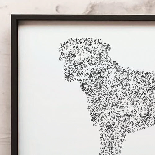 Hand-drawn and printed on matt art paper. Easy to frame, this hand-signed and numbered print will be a great discussion starter!
