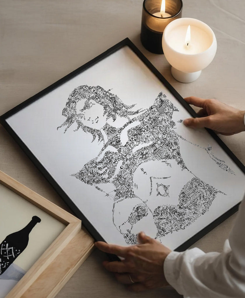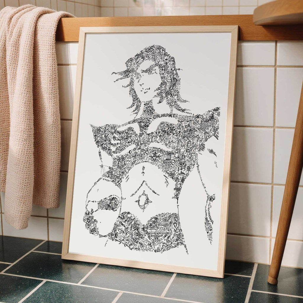 Dessiné à la main et imprimé sur du papier d'art mat. Facile à encadrer, cette impression signée et numérotée à la main sera un excellent sujet de discussion!