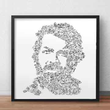 Le dessin original est fait a la main, numérisé pour une impression a la demande. Le style unique du portrait biographie en fait un cadeau très apprécié !
