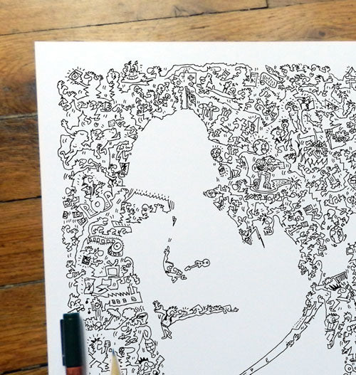 Hand-drawn and printed on matt art paper. Easy to frame, this hand signed and numbered print will be a great discussion starter !