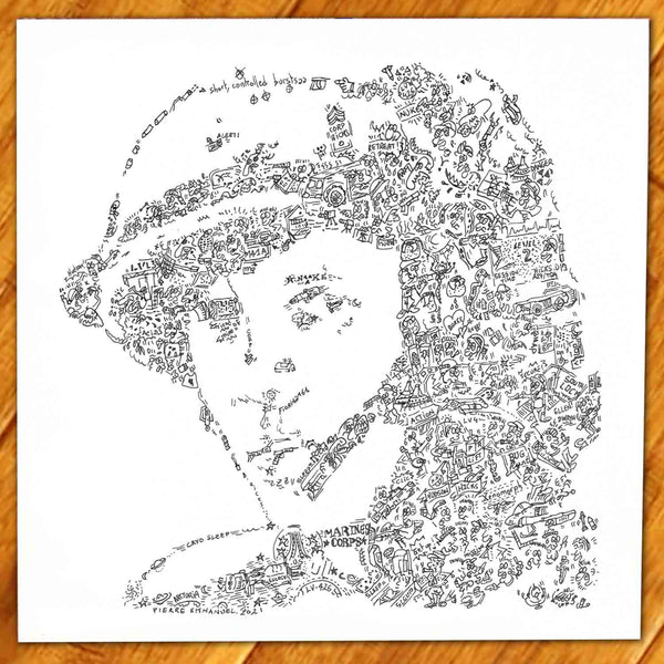 Hand-drawn and printed on matt art paper. Easy to frame, this hand-signed and numbered print will be a great discussion starter!