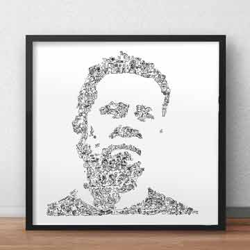 Le dessin original est fait a la main, numérisé pour une impression a la demande. Le style unique du portrait biographie en fait un cadeau très apprécié !
