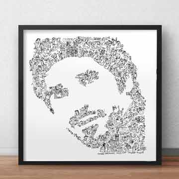 Le dessin original est fait a la main, numérisé pour une impression a la demande. Le style unique du portrait biographie en fait un cadeau très apprécié !
