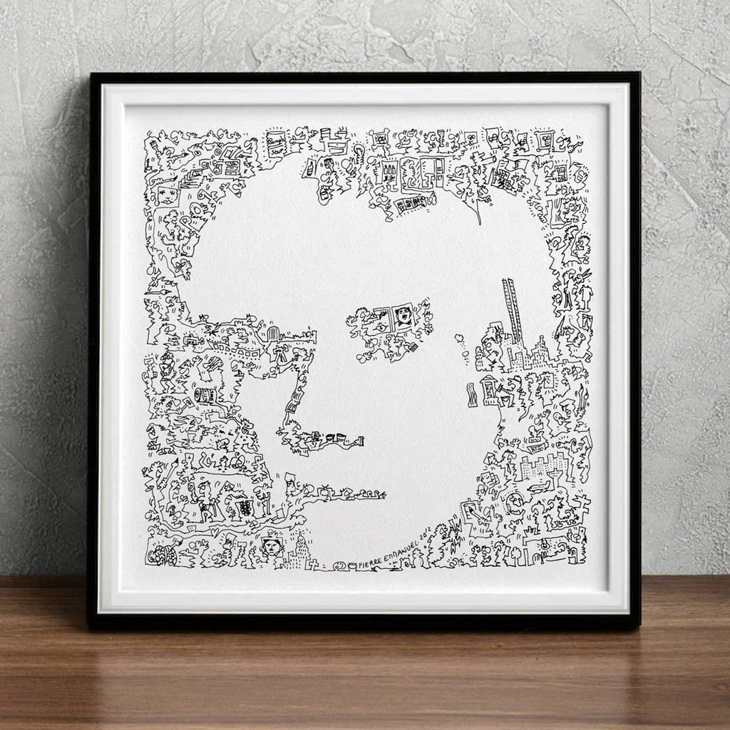 Hand-drawn and printed on matt art paper. Easy to frame, this hand signed and numbered print will be a great discussion starter !