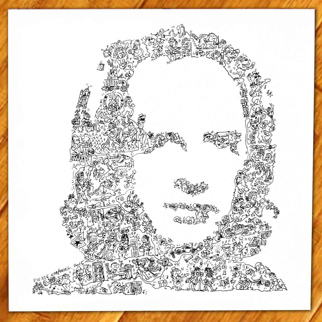 A portrait of Brad Whitford with doodles inside the print. Plenty of details about the Aerosmith rythm guitarist :