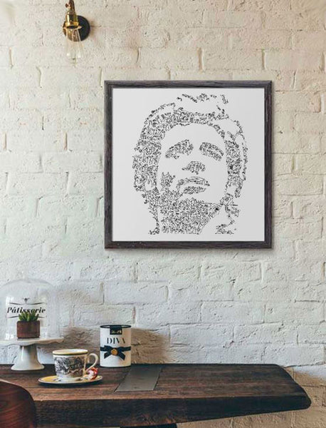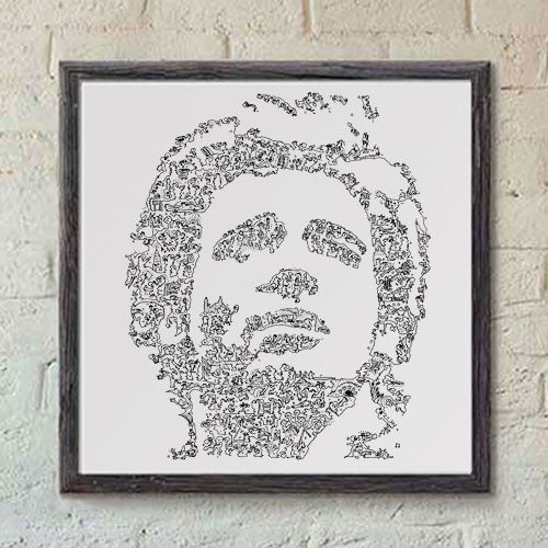 A portrait of the boss with doodles inside the print. Plenty of details about Bruce Springsteen : Born in america, the telecaster, the E street Band, a Wreckin ball !