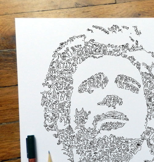 Hand-drawn and printed on matt art paper. Easy to frame, this hand-signed and numbered print will be a great discussion starter!