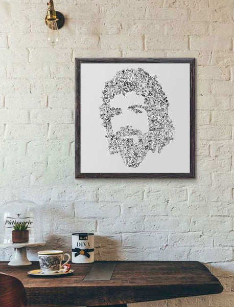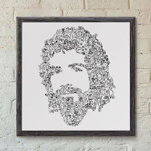 A portrait of Cat Stevens with doodles inside the print. Plenty of details about the singer :