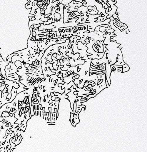 Hand-drawn and printed on matt art paper. Easy to frame, this hand-signed and numbered print will be a great discussion starter!