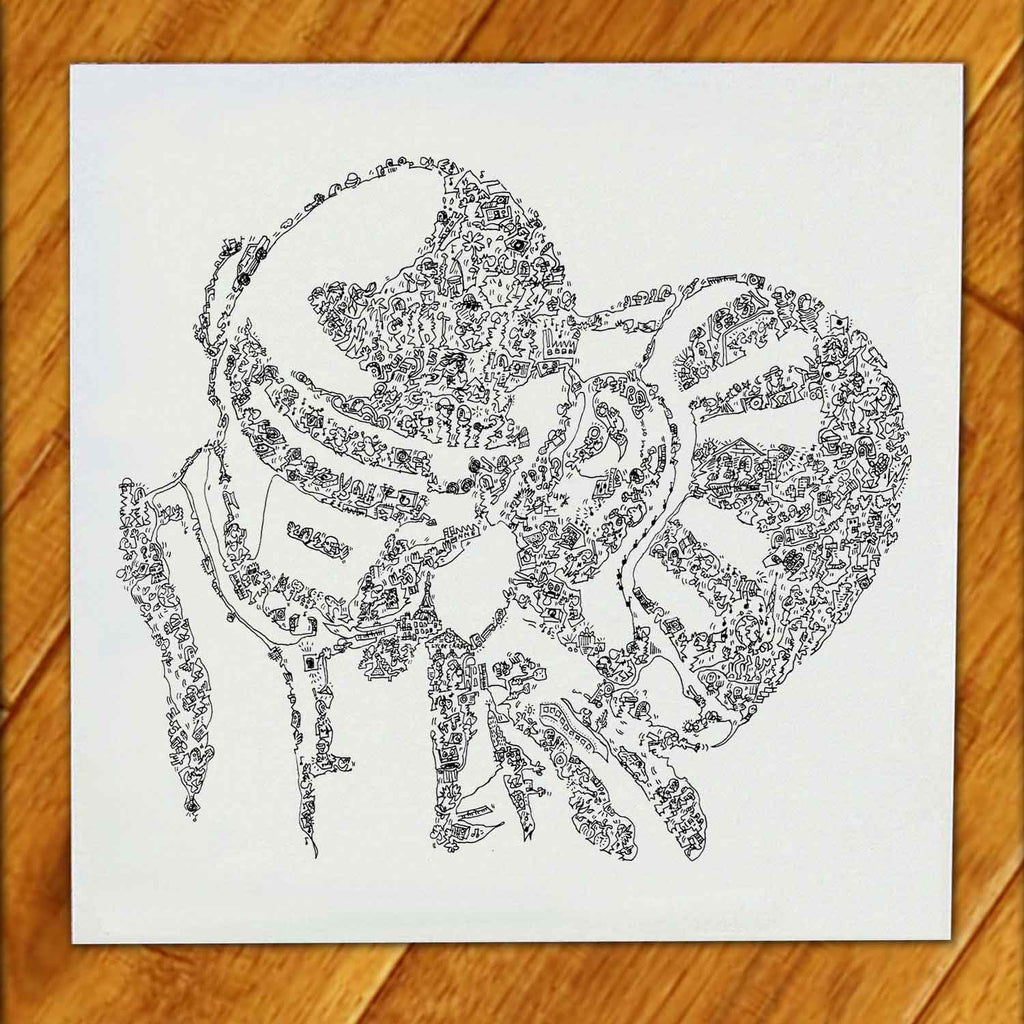 Hand-drawn and printed on matt art paper. Easy to frame, this hand-signed and numbered print will be a great discussion starter!
