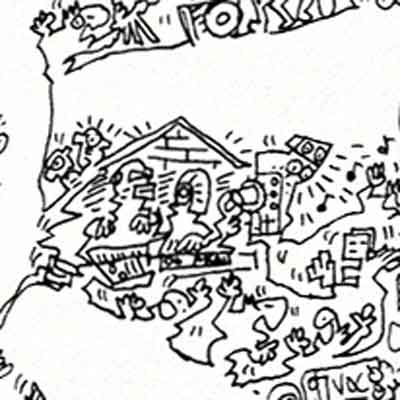 A portrait of the Daft Punk with doodles inside the print. Plenty of details about the duo :