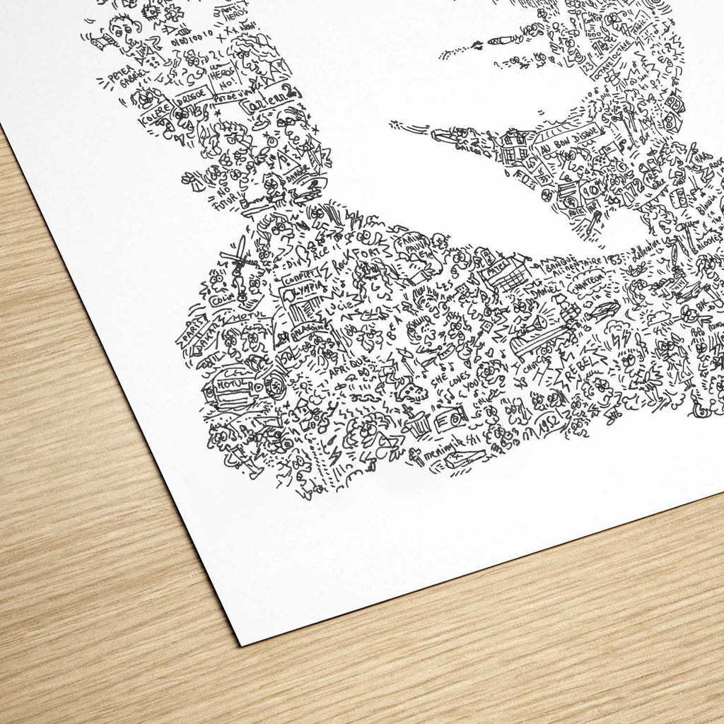 Hand-drawn and printed on matt art paper. Easy to frame, this hand-signed and numbered print will be a great discussion starter!
