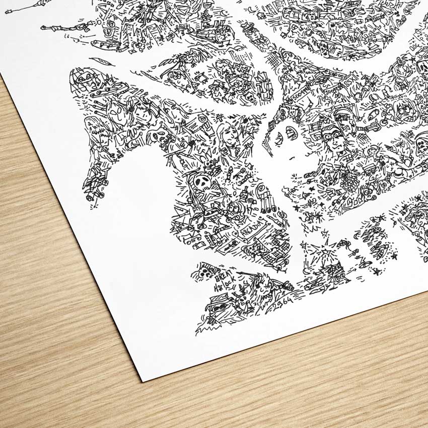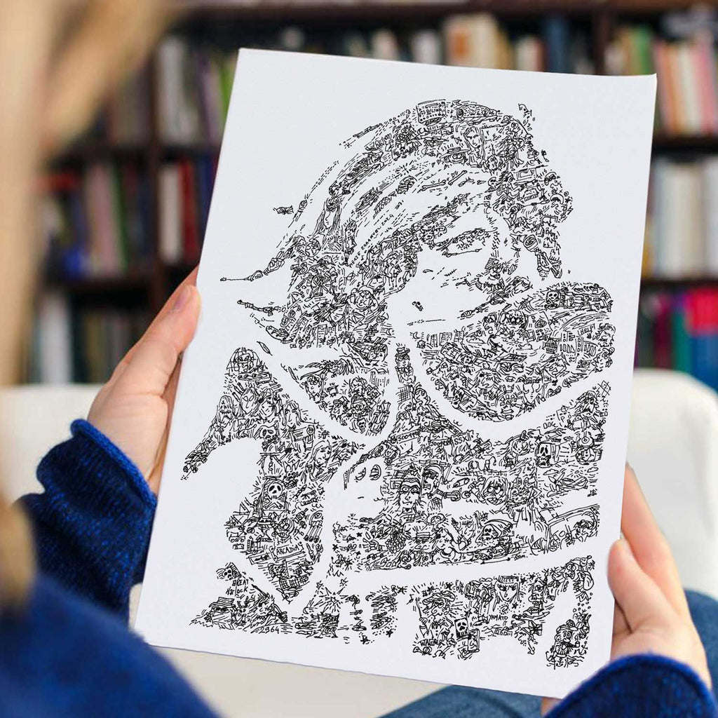 Hand-drawn and printed on matt art paper. Easy to frame, this hand-signed and numbered print will be a great discussion starter!