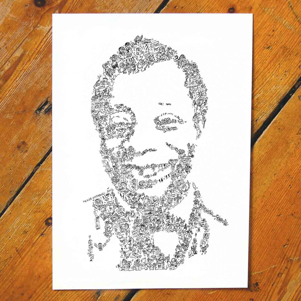Hand-drawn and printed on matt art paper. Easy to frame, this hand-signed and numbered print will be a great discussion starter!