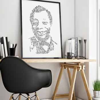A portrait of James Baldwin with doodles inside the print. Plenty of details about the black Writer. Get closer and you will find the following details inside the portrait :