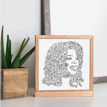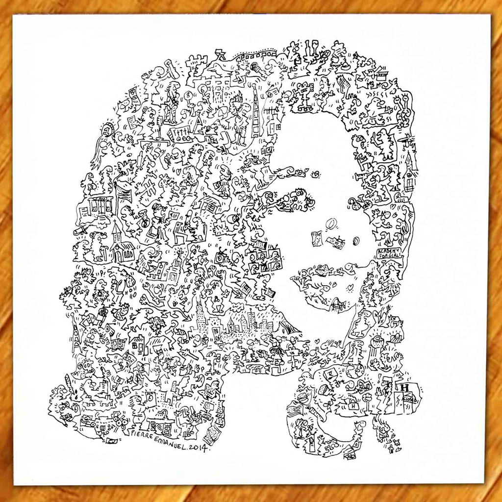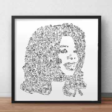A portrait of Oprah Winfrey with doodles inside the print. Plenty of details about the queen of communication :