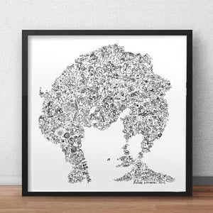 Hand-drawn and printed on matt art paper. Easy to frame, this hand-signed and numbered print will be a great discussion starter!