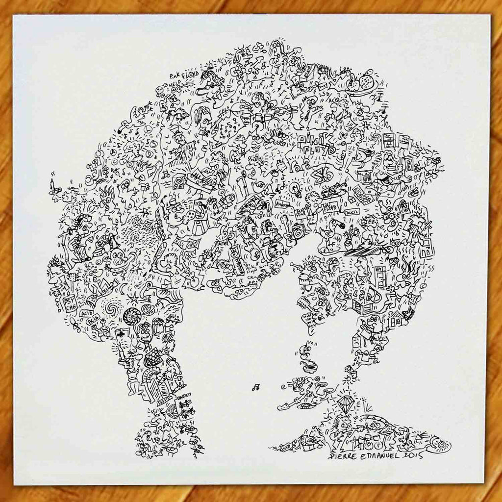 A portrait of Syd Barrett with doodles inside the print. Plenty of details about the ex - Pink Floyd :