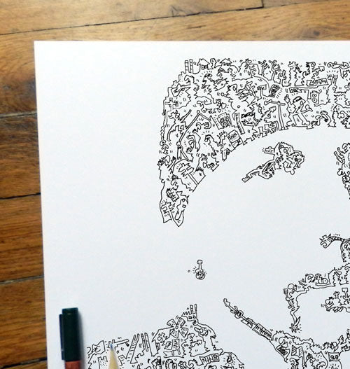 Hand-drawn and printed on matt art paper. Easy to frame, this hand signed and numbered print will be a great discussion starter !